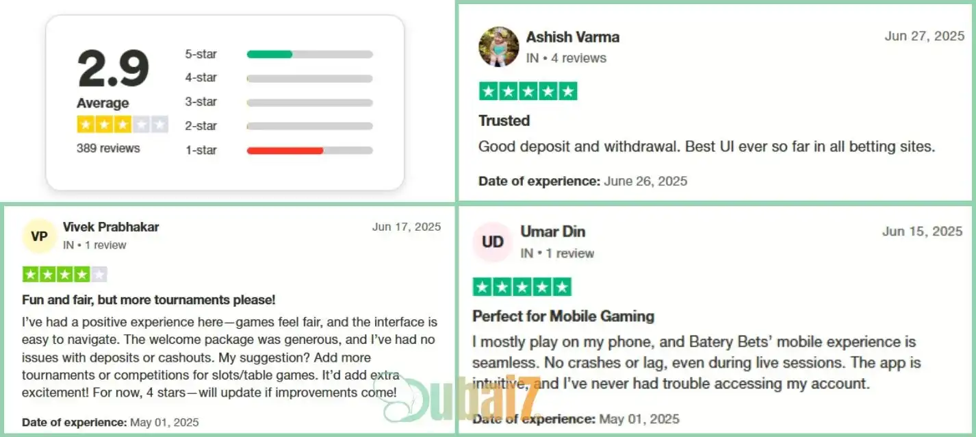 Batery has only a 2.9 rating on Trustpilot, which is not very reassuring. Player reviews are quite mixed.