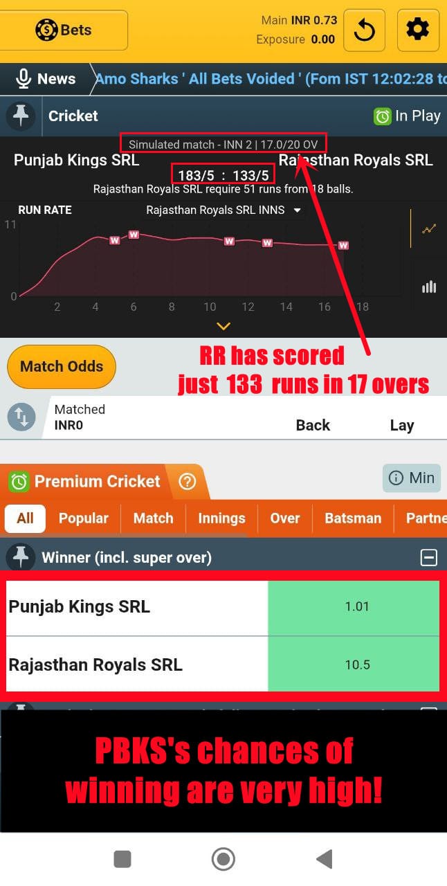 For example: In the picture below, PBKS scored 183 runs; RR has only 92 runs by the 10.4 over mark.